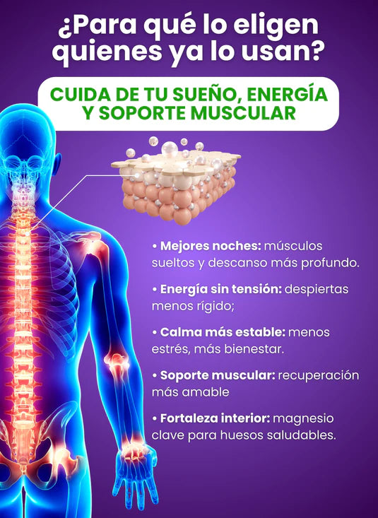 Ayuda a reducir el estrés, mejorar la calidad del sueño, relajar los músculos y mantener el equilibrio nervioso y hormonal.