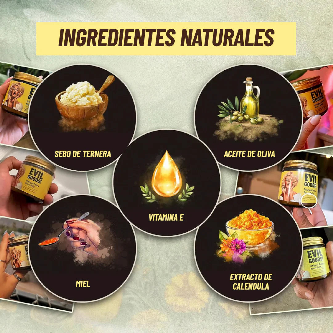 Nuestra crema combina sebo de res y miel cruda, ingredientes utilizados durante siglos por sus propiedades hidratantes y nutritivas. El sebo de res aporta vitaminas A, D, E y K, esenciales para la regeneración celular, mientras que la miel ofrece propiedades antibacterianas y antiinflamatorias, ideales para calmar y reparar la piel.
