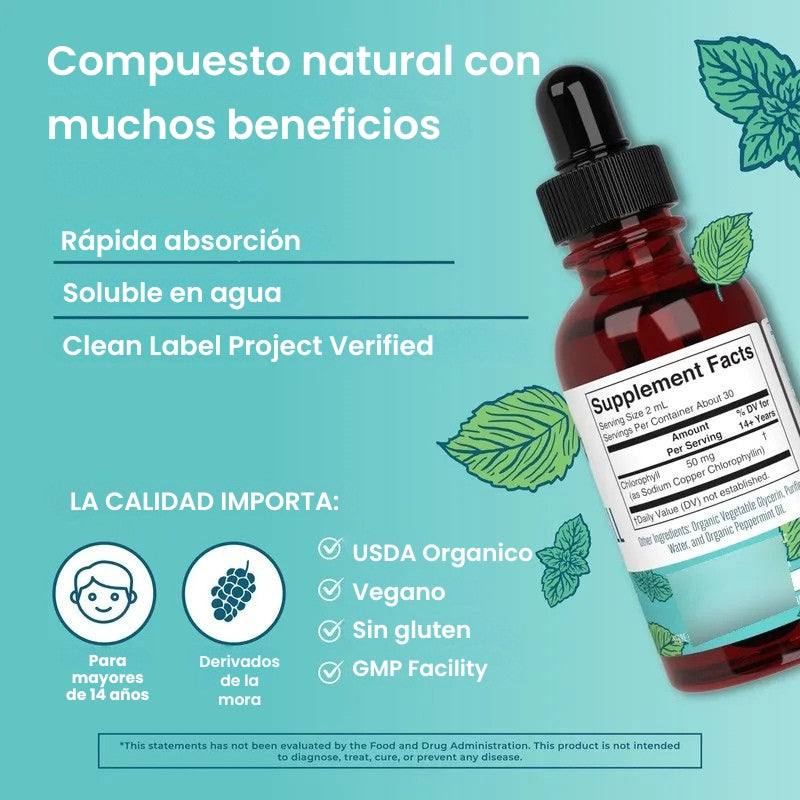 Nuestras gotas de clorofila líquida son una solución natural y efectiva para limpiar tu organismo y mejorar tu digestión. Actúan como un detox suave pero profundo, ayudando al hígado a eliminar toxinas, equilibrando la flora intestinal y promoviendo un tránsito digestivo saludable. Es una fórmula concentrada, orgánica, sin gluten ni químicos, fácil de tomar cada día en agua o jugo.