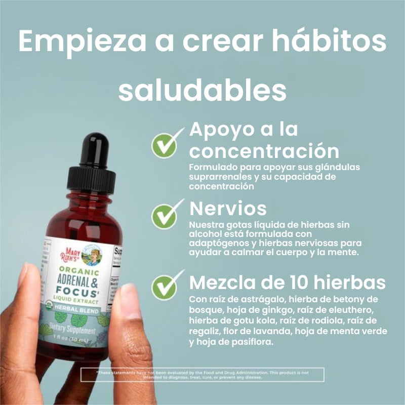 Este suplemento herbal líquido fue diseñado para restaurar tu claridad mental y apoyar tus glándulas suprarrenales de forma natural. Gracias a ingredientes como Ashwagandha, Rhodiola y Eleuthero, fortalece tu cuerpo ante el estrés, mejora tu enfoque y promueve una energía constante sin subidas ni bajones. Solo necesitas unas gotas al día para notar cómo tu mente vuelve a estar en sintonía contigo.