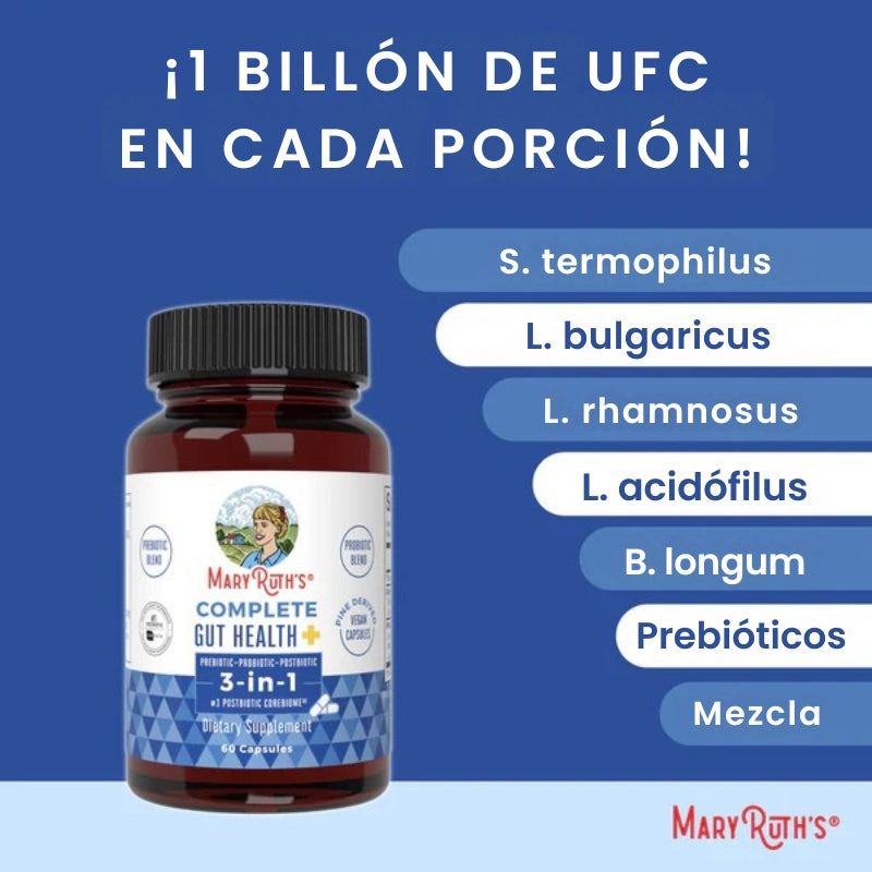 Nuestro suplemento combina probióticos, prebióticos, postbióticos y enzimas digestivas en una sola cápsula vegetal. No solo repuebla tu flora intestinal, sino que repara, refuerza y regula de manera completa tu salud digestiva. Todo con ingredientes clínicamente respaldados, libres de alérgenos, azúcar y aditivos innecesarios.