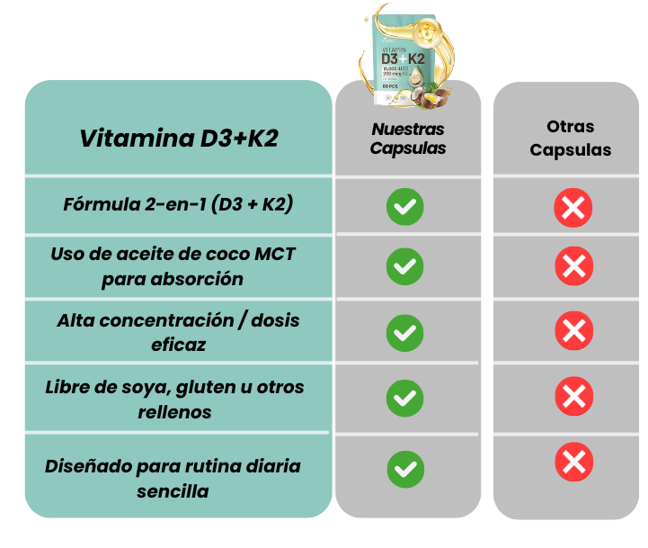 Sirve para apoyar los niveles de vitamina D3 + K2, facilitando la absorción de calcio, reforzando huesos, sistema inmune y salud cardiovascular.